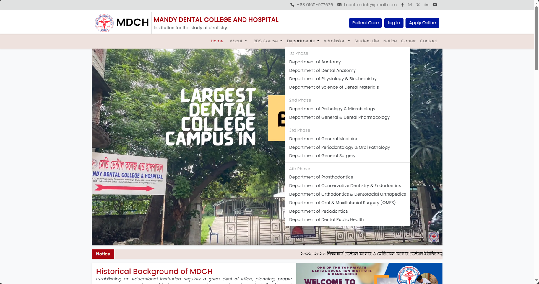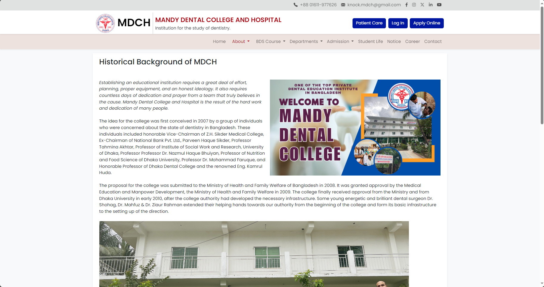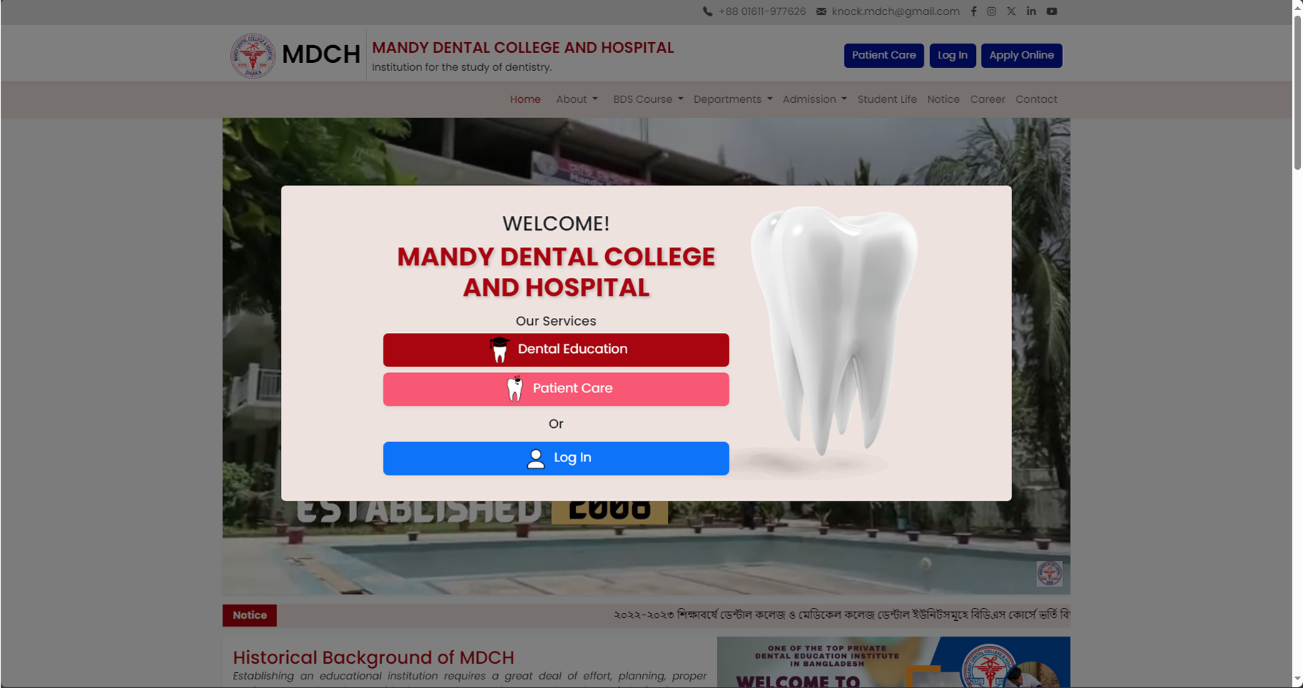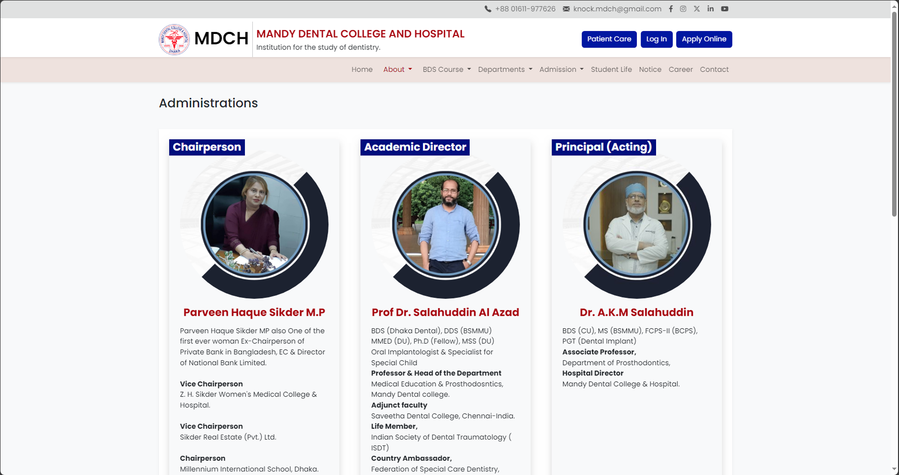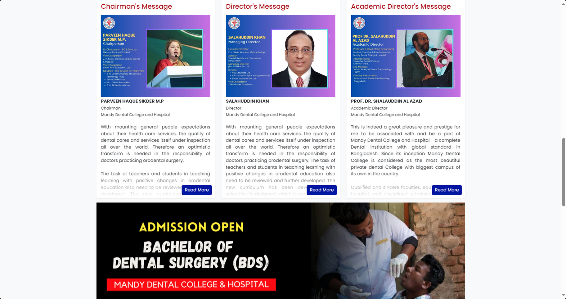 A comprehensive website for a dental college and hospital with appointment scheduling, doctor profiles, and patient management.